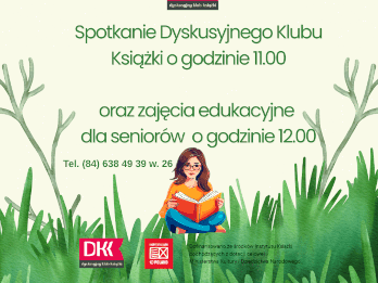 Zapraszamy na spotkanie Dyskusyjnego Klubu Książki oraz zajęcia edukacyjne z seniorami.