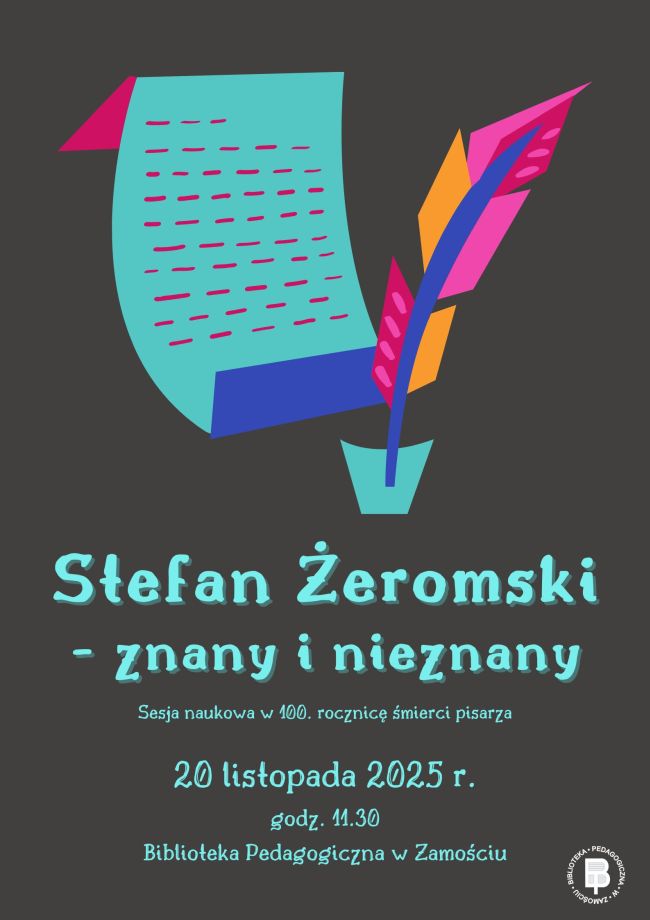 Biblioteka Pedagogiczna w Zamościu zaprasza na sesję naukową poświęconą życiu i twórczości Stefana Żeromskiego, wybitnego pisarza i autora dzieł, które od ponad wieku kształtują wrażliwość i postawy kolejnych pokoleń Polaków.